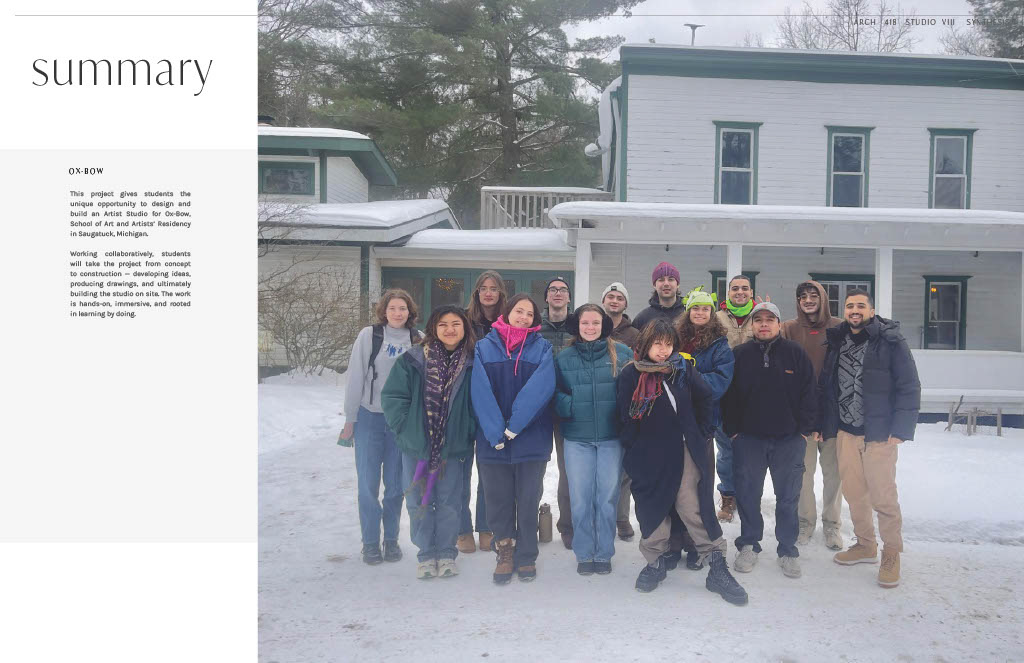 A Design-Build Studio where we explored the most functional ways of living on a site located in Michigan. Ultimately, our process was reduced and resulted in a different final construction. However, our efforts in detail as a collective produced an innovative design for a student-cabin.